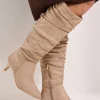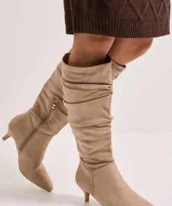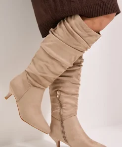 Wide Fit Khloe Faux Suede Kitten Heel Knee High Ruched Boots
