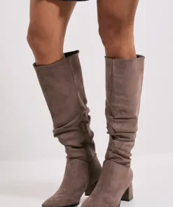 Carla Faux Suede Ruche Medium Block Heel Knee Boots