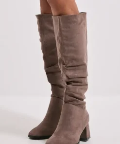 Carla Faux Suede Ruche Medium Block Heel Knee Boots