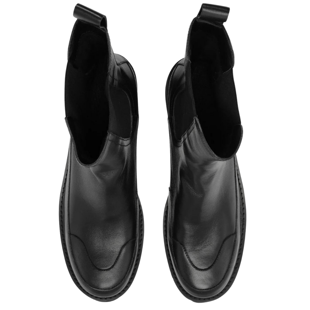 Mid calf 3/4 length Chelsea boots. Made from smooth leather, these comfortable boots are designed with a rounded toe cap and elastic side panels. The chunky rugged sole ensures good grip in variable weather conditions. We recommend you to impregnate these boots upon receipt and periodically, after commencing usage.